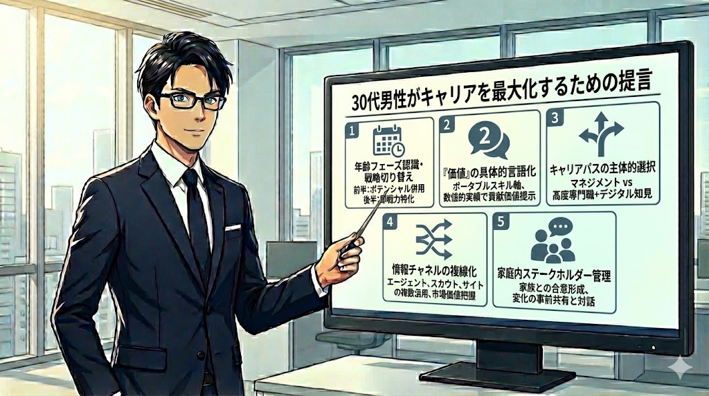 30代日本人男性の転職事情を詳細に分析した結果、彼らのキャリアを最大化するための戦略的提言は、以下の5点に集約される。